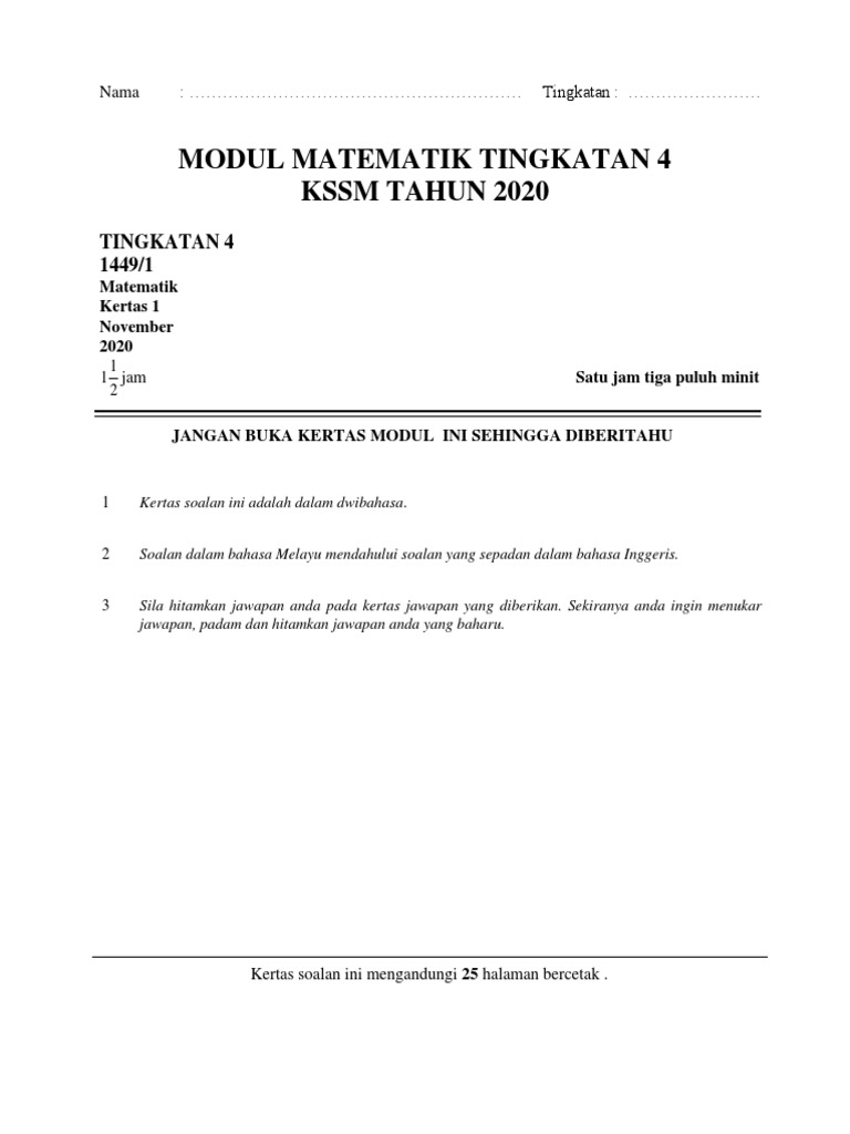 Soalan Matematik Kssm Tingkatan 4. Video ini menerangkan langkah kerja untuk menyelesaikan soalan pada buku teks matematik tingkatan 4 kssm, latihan praktis kendiri 9.3a, . 1000 soalan objektif sejarah tingkatan 4.